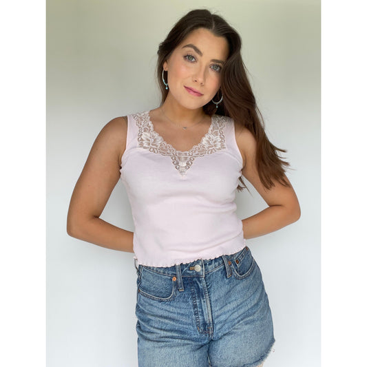 Lauren Ralph Lauren Petite Blush Pink Lace Tank 90s