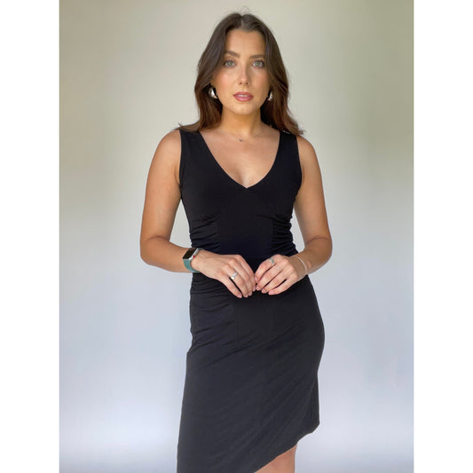 Espirit Y2K Black Ruched Tank Midi Dress- Size M