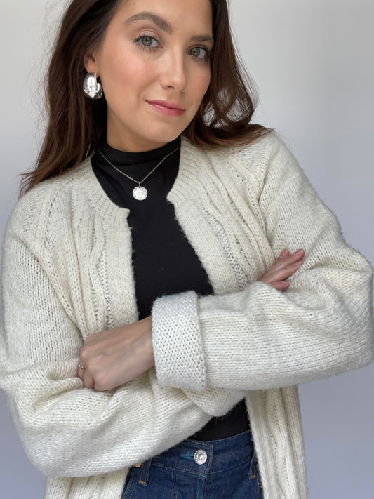 Cream Hand Knit Cable Knit Cardigan - Size Medium