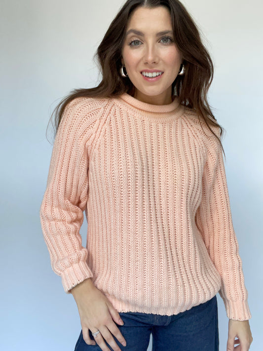 Vintage Rolled Collar Crewneck Sweater - Size Large, Light Pink