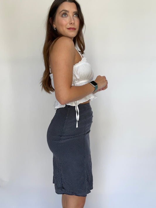 Talbots Silk Navy Polka Dot Mini Skirt | Size 28