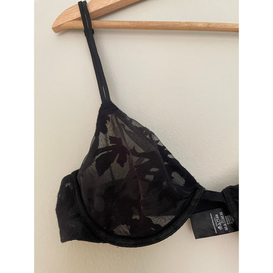 Calvin Klein Black Floral Embroidered Mesh Bra - Size 34C