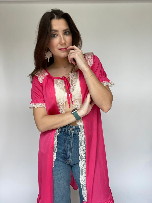 Vintage Barbie Pink Lace Trim Peignoir Robe - Size Medium