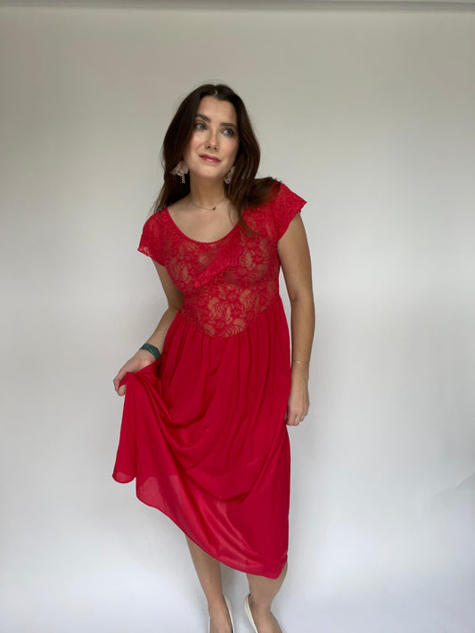 Vintage Delicates Red Lingerie Ruffle Bodysuit