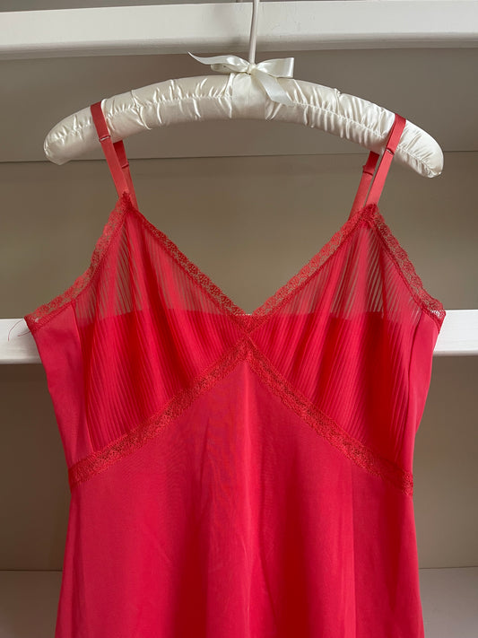 Vintage Pink Pleated Slip Dress Ruffle Trim - Size Small