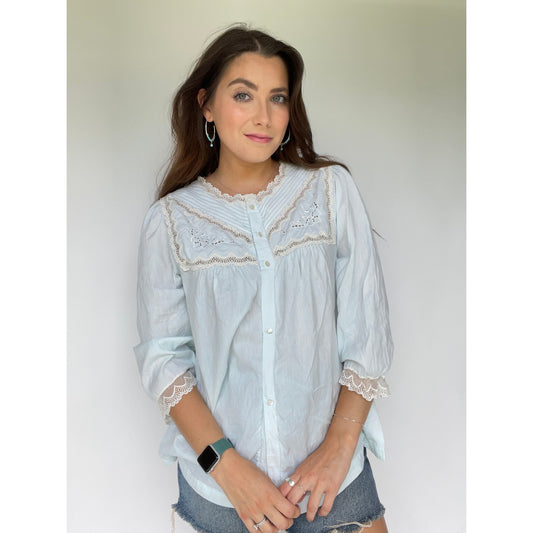 Komar Vintage Floral Embroidered Nightgown Balloon Sleeves