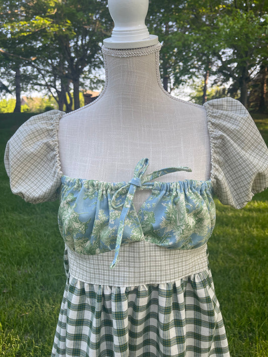 Blue and Red Plaid Puff Sleeve Frolicking Dress - Handmade