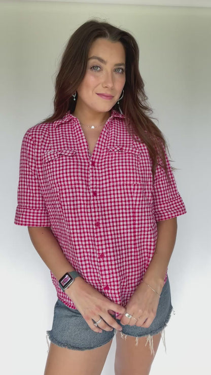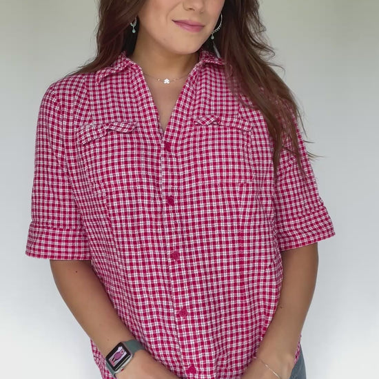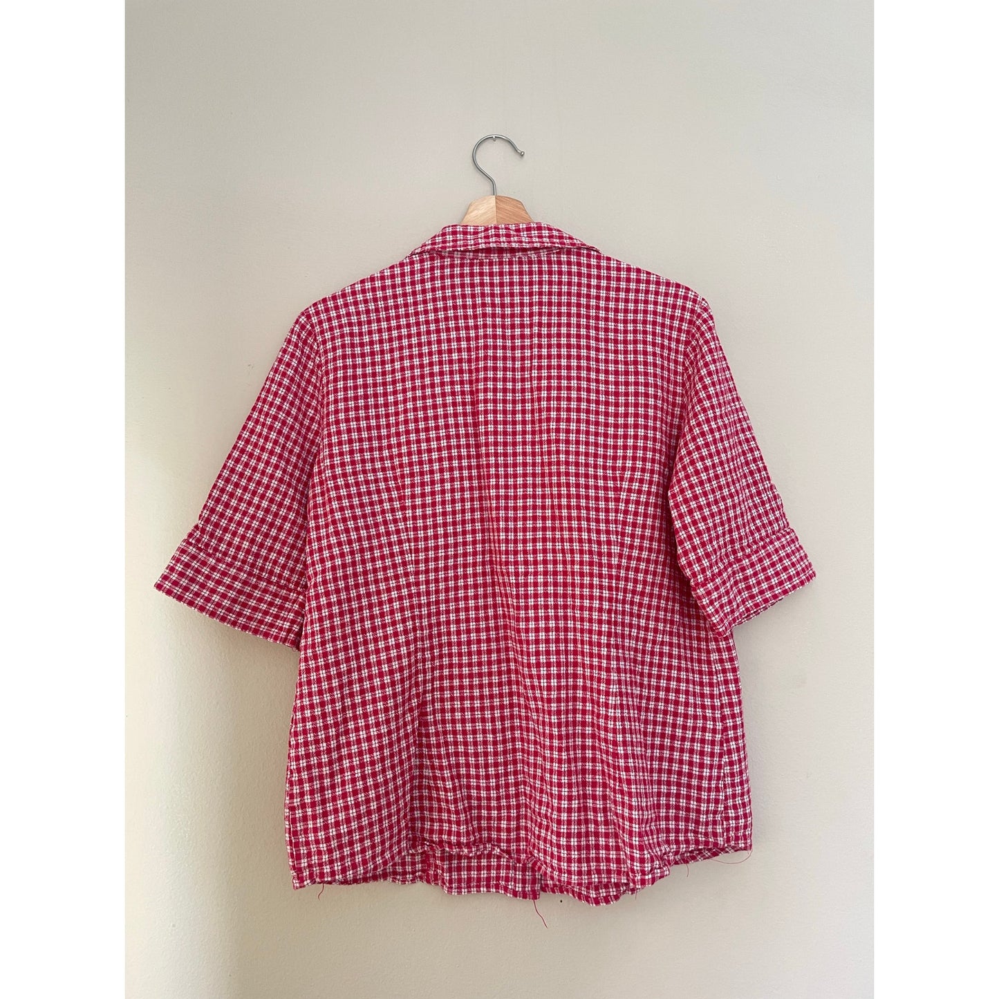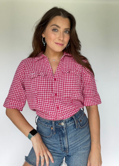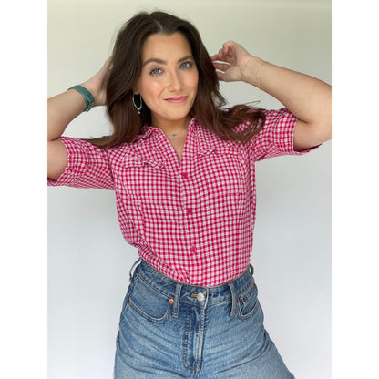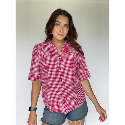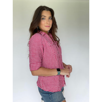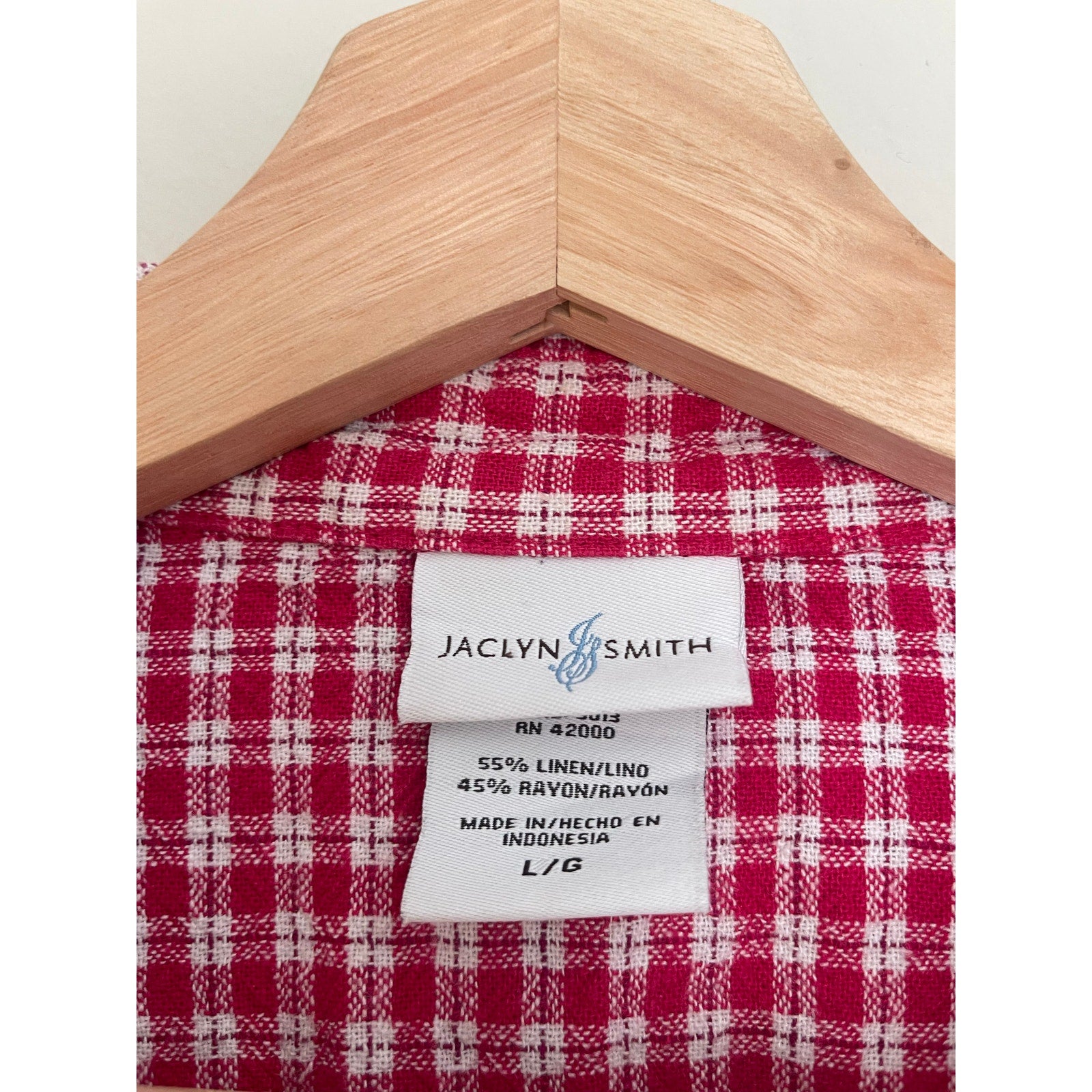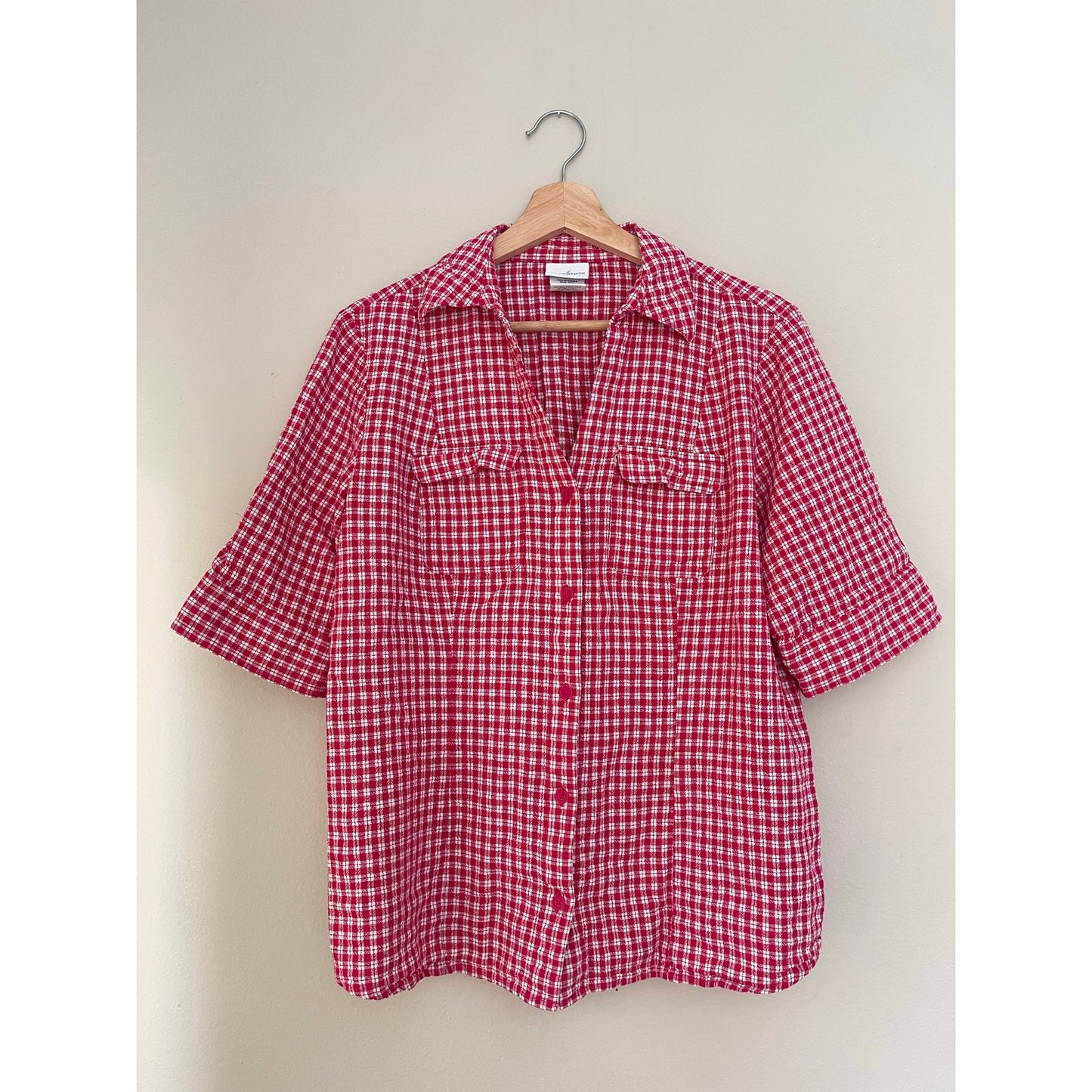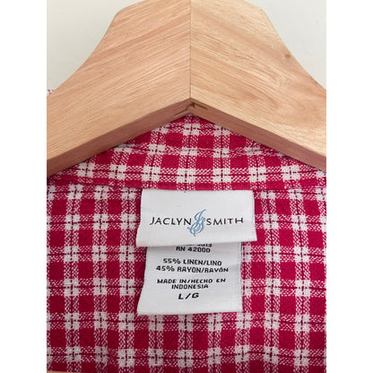 Jaclyn Smith Red and White Gingham Plaid Button-Down Shirt